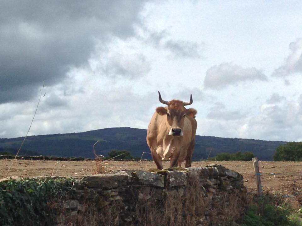 A lady was chasing this cow around , swatting it with a stick, because it would not come back to the barn. It gave zero f**ks. It preferred to watch pilgrims walk by