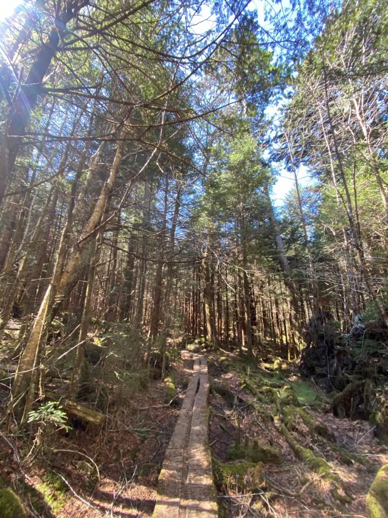 In Great Smoky Mountains National Park, there is a beautiful 8 mile section of the Appalachian Trail between Newfound Gap and Clingmans Dome (Kuwahi)